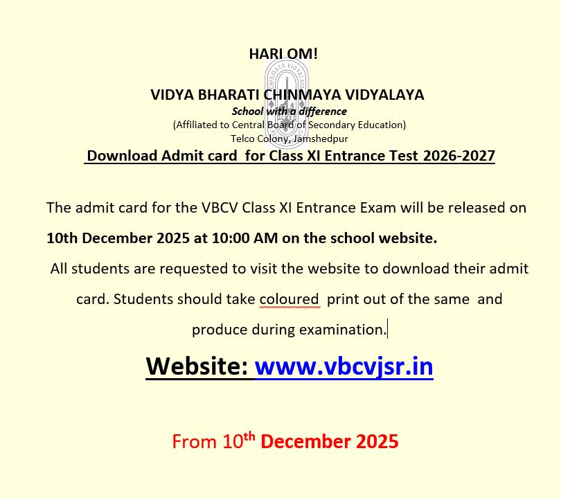 Today the role of a school is not only to pursue academic excellence but also to motivate and empower its students to be life long learners and productive members of an ever-changing global society. At Vidya Bharati Chinmaya Vidyalaya , we provide an atmosphere to our students for holistic development by providing student centric teaching environment . Gentle enfoldment of the innate potential of the children is encouraged in order to channelize their potential in the pursuit of human excellence. We impart in Chinmayans the tenet of social consciousness and the capacity to formulate ethical opinions. While tramsmitting enriching and innovative learning experiences, we gently edify them to be prepared to stretch their boundaries further and face new challenges outside their comfort zone.